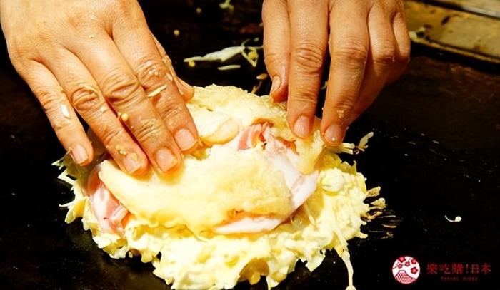 在一般的大阪燒上,放入馬鈴薯、天婦羅片