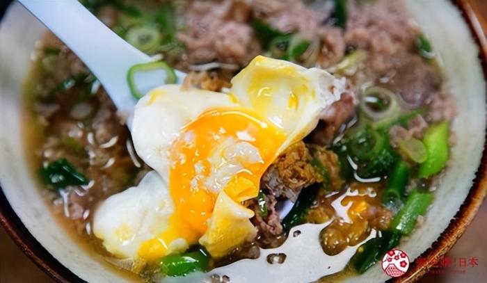 肉吸湯的做法簡單,卻充滿學問。選用牛肩、牛五花等油脂豐富的部位,放進用柴魚、醬油、砂糖熬煮的高湯裡燙熟後,加入半熟蛋、撒上蔥花就完成了!湯頭的牛肉香濃郁,加上青蔥稍微提味與銷魂的半熟蛋,口味溫和,也推薦加點生雞蛋拌飯。加入熱湯攪拌,簡單就很美味。