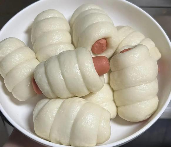 麵糰包裹香腸段蒸熟,中式“熱狗”鬆軟鮮香,早餐省時又管飽。