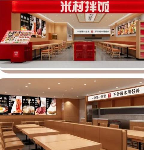 米村拌飯勢頭強勁、陣仗高調,3月21店齊開,4月46店齊開,5月17店齊開。據官網,品牌尚未開放加盟,1000多店全部為直營,可見其資金、運營、供應鏈實力雄厚。門店普遍比較寬敞,大量原木桌椅點綴少量紅色,彷彿“韓式料理版的快餐店”。