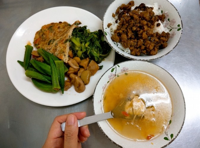 - 素燥飯 + 滷豆腐: 懷念的古早味!素燥鹹香下飯,滷豆腐吸飽了滷汁,軟嫩入味,淋點辣椒醬更提味。是超級飽足的平價組合。